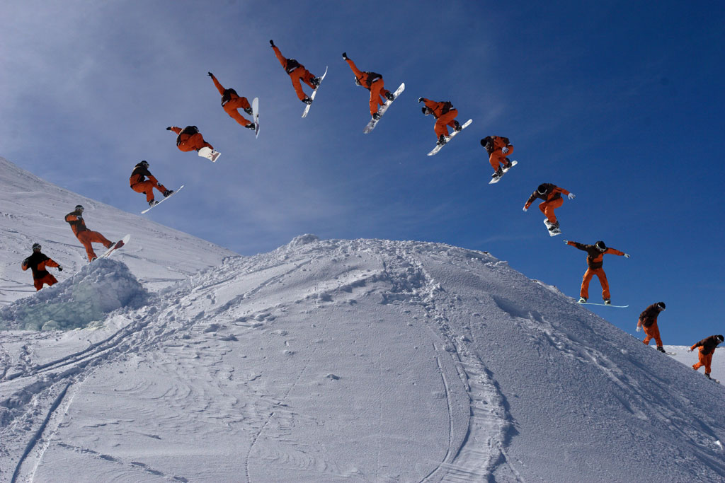 6. **Landing:** As you complete the rotation, extend your legs to prepare for landing. Aim to land with your snowboard flat and parallel to the slope. Bend your knees upon impact to absorb the landing and maintain control.
