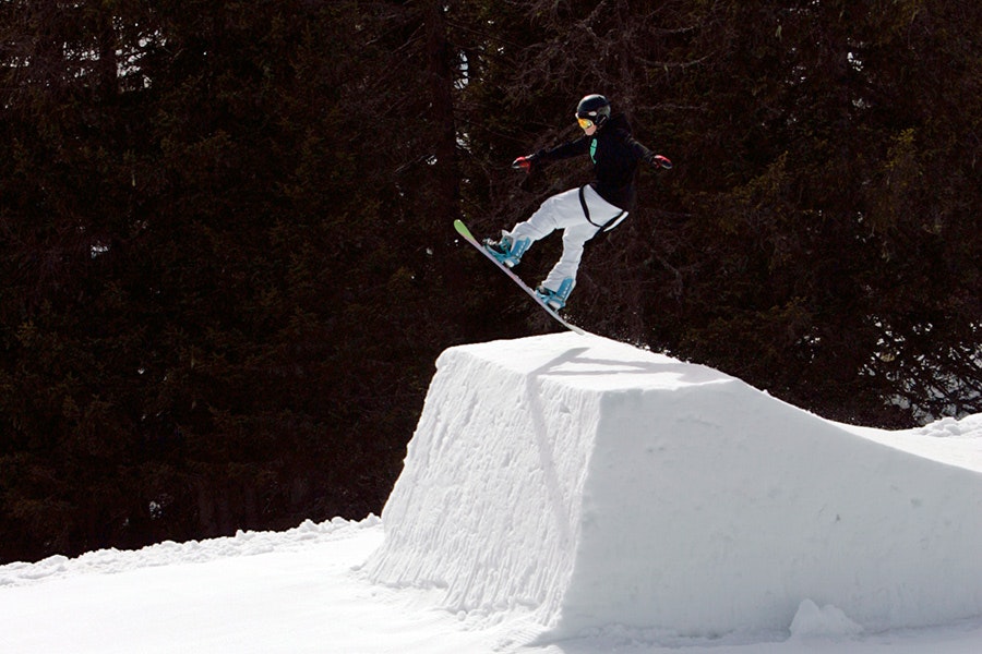 2. **Takeoff:** As you reach the lip of the jump, compress your snowboard and prepare for takeoff. Use your legs to generate upward momentum.
