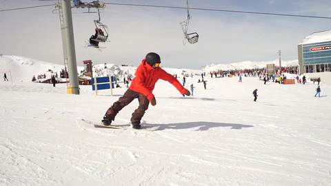 2. **Ollie onto the Feature:** As you reach the takeoff point, perform an Ollie to lift yourself onto the rail or box. Aim to land with your snowboard's nose pressed against the feature and your weight centered over the front foot.
